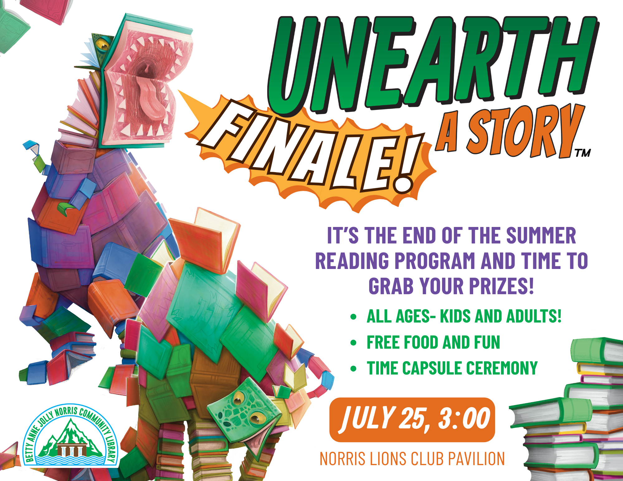 It’s the end of our summer reading program and time to turn in your reading log for prizes! Join us at the Norris Lions Club Pavilion across from the library at 3pm on July 25th for food, fun, and more for all ages.