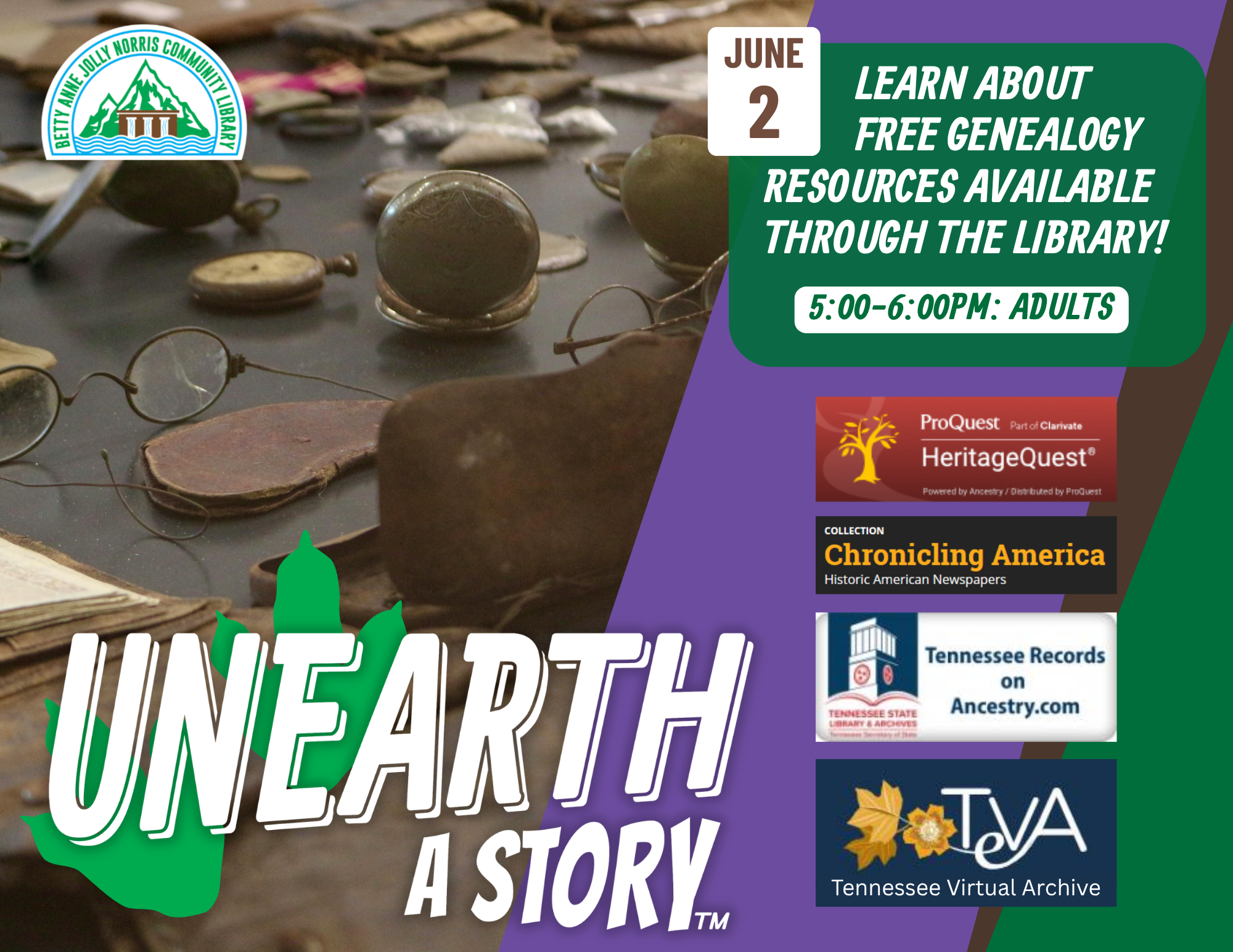 Learn about free genealogy resources available through the library to help you unearth some family stories! We'll discuss how you can access both digital and physical databases, books, and more in this one hour class, as well as helping you get started on your own genealogical research.